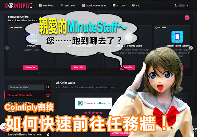 Cointiply Powerful 密技大公開!快速前往「Offer Walls」!